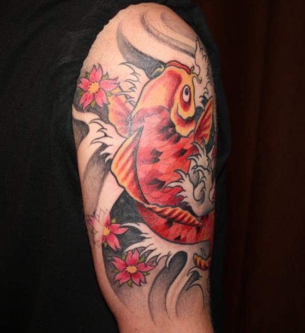 漂亮时尚的红鲤鱼纹身