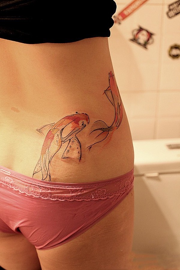 美女身上性感的鲤鱼刺青
