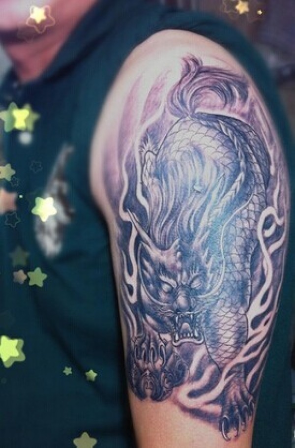 龙纹身手稿_一组老传统黑灰龙手稿纹身图案