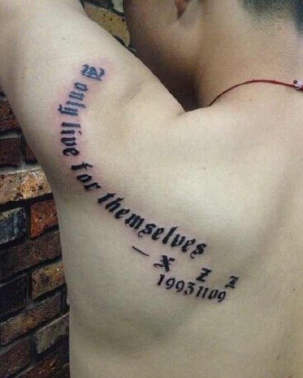 阳光男人身上的英文刺青