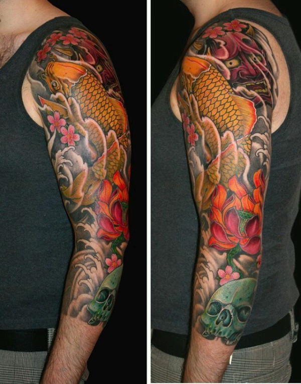 希腊纹身师KOSTAG的鲤鱼般若花臂刺青