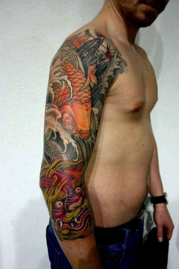 希腊纹身师KOSTAG的鲤鱼般若花臂刺青