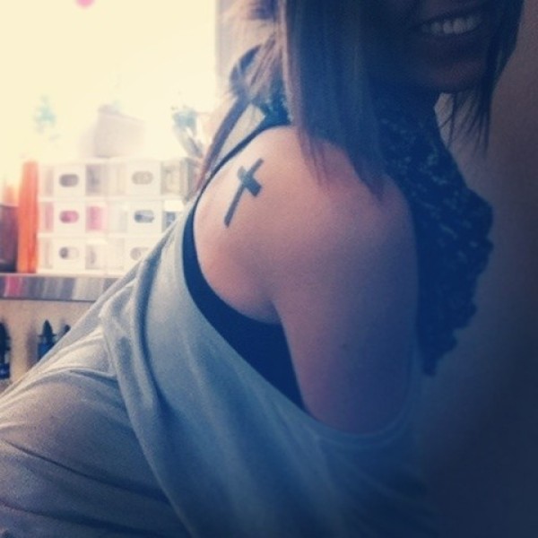 美女身上清新唯美的十字架纹身