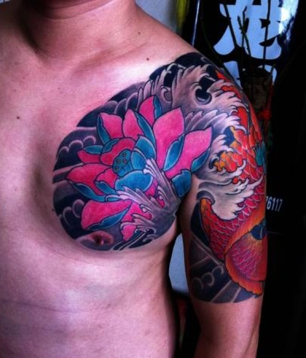 漂亮的莲花鲤鱼半甲纹身
