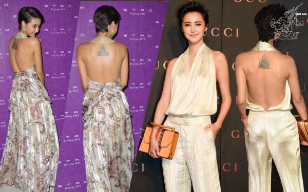 演员张歆艺的背部纹身