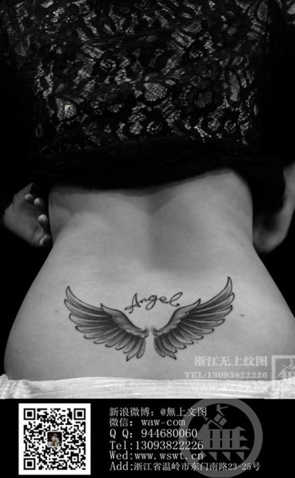 女生腰部天使翅膀纹身
