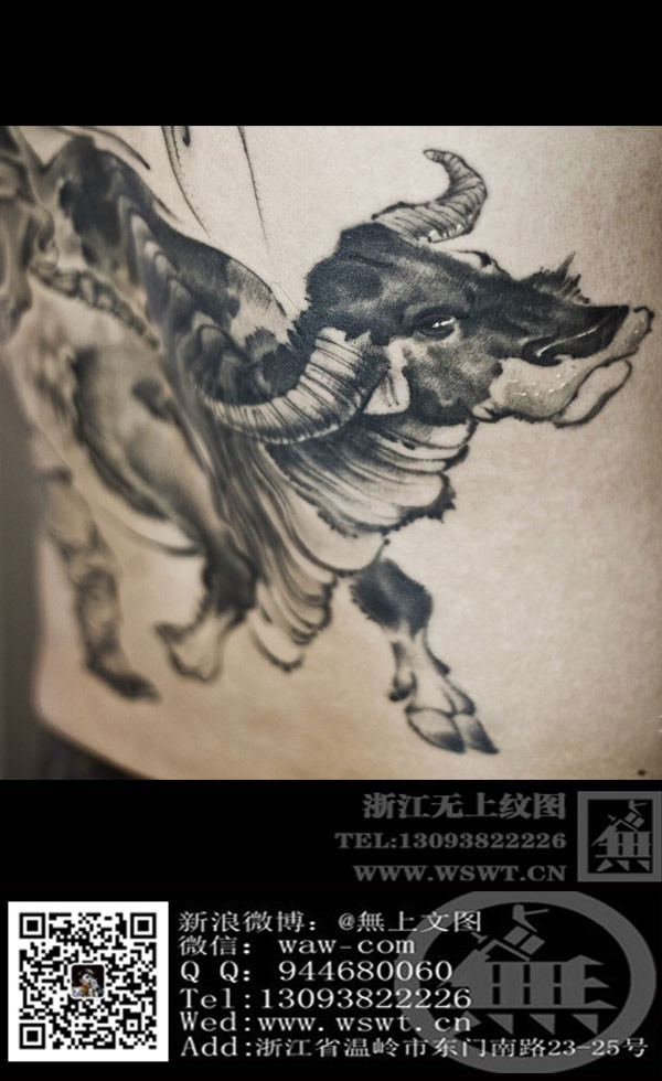 水墨风格背部纹身