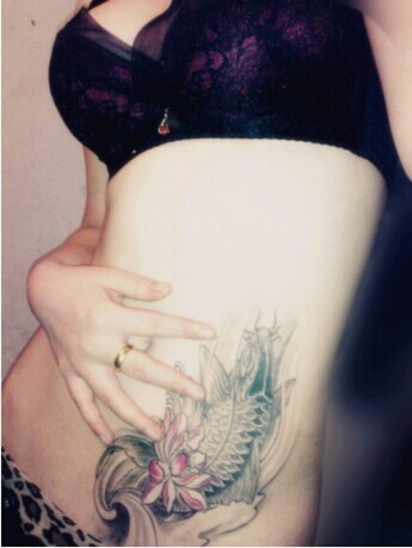 美女腰部漂亮的鲤鱼纹身