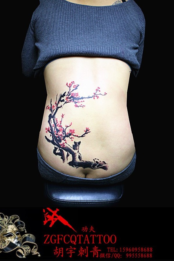 分享一款腰部时尚性感的蝶恋花纹身图案_腰部纹身图案大全_纹身图吧
