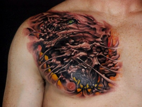 西班牙3D名师diego ruiz 的胸部纹身作品
