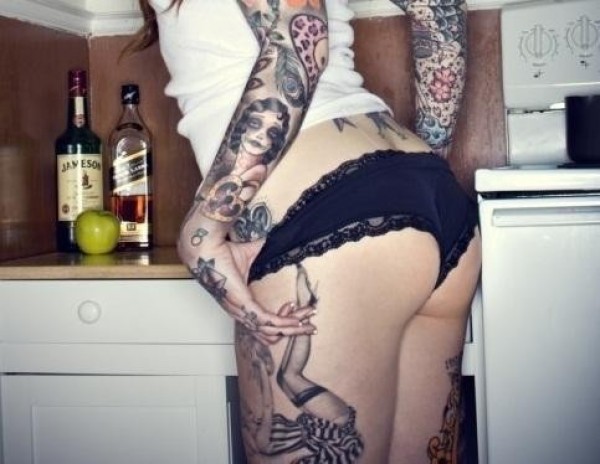 性感时尚的美女花臂纹身
