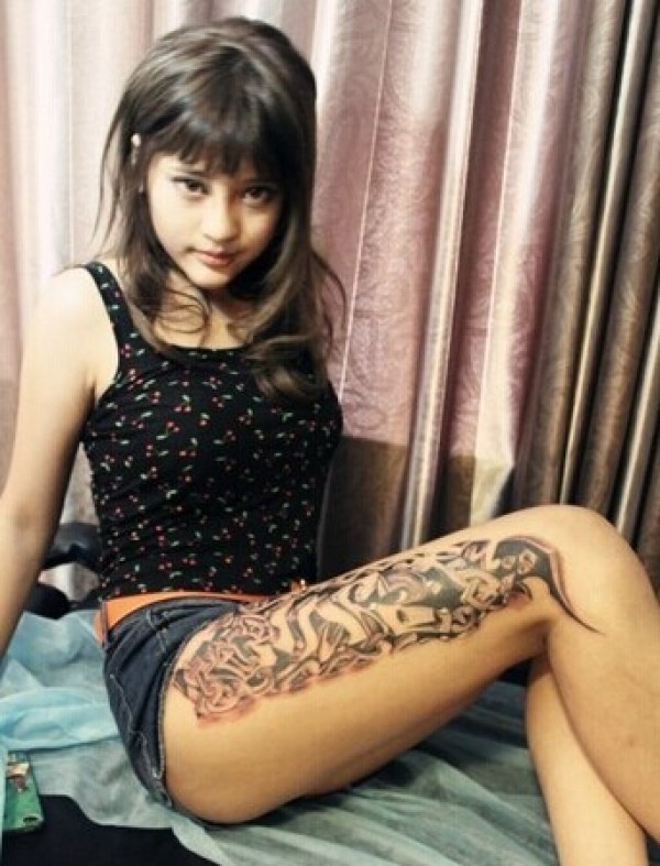 女孩腿部唯美刺青_腿部纹身图案大全_纹身图吧