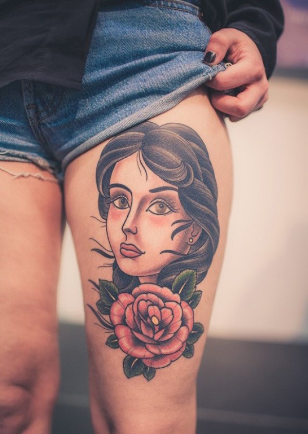 传统花腿纹身--18张传统风格的大花腿纹身图案作品