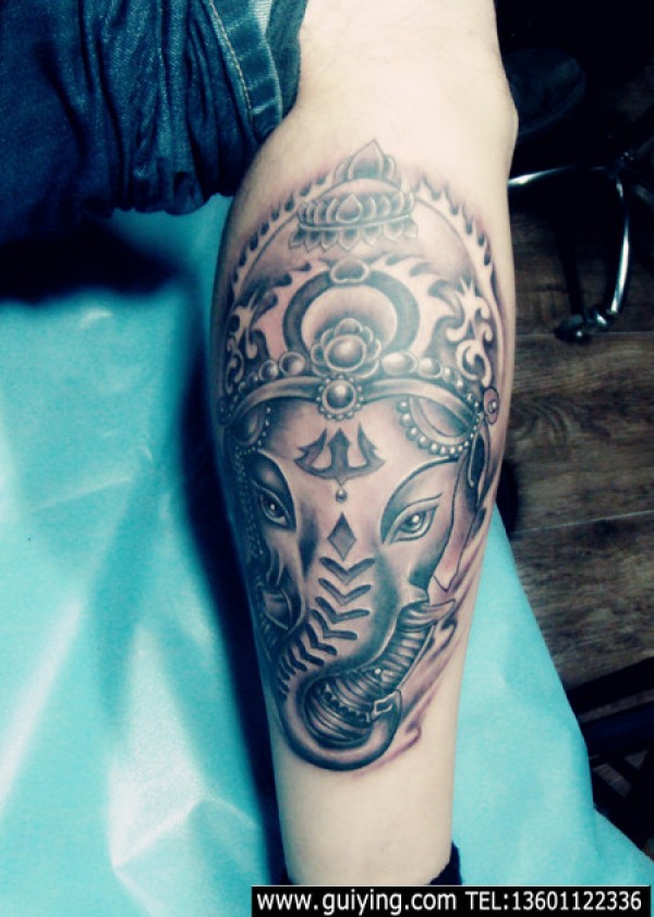手臂黑灰象神_一组12张手臂上的黑灰象神纹身图案作品欣赏