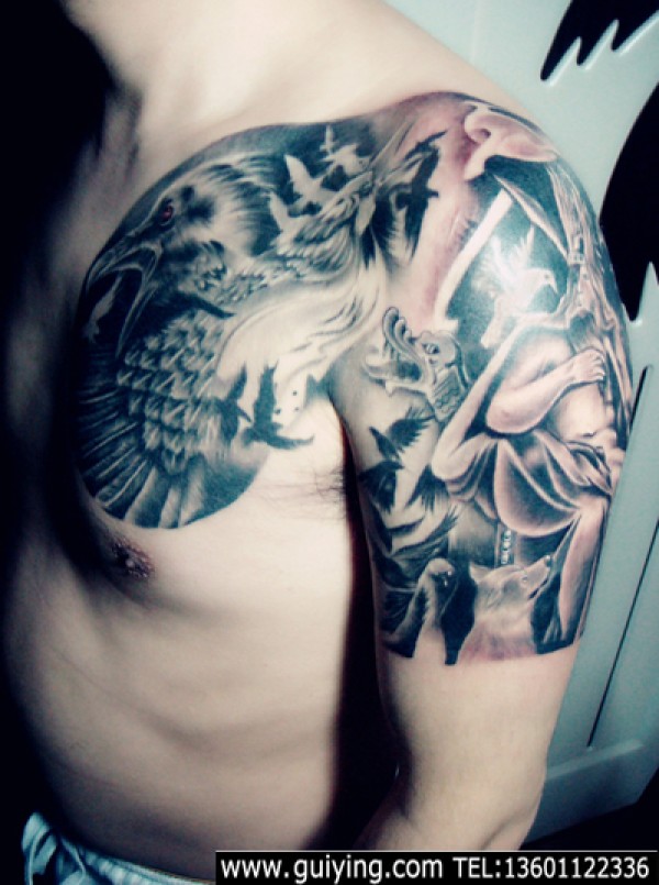 女生肩花纹身_15张女性双肩对称的肩花纹身图案作品图片