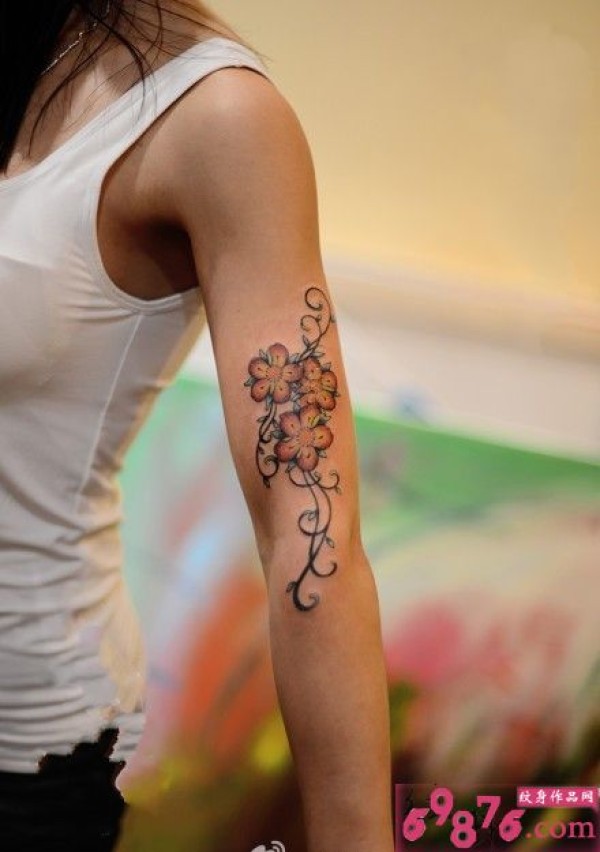 清新小鲜花手臂纹身图片