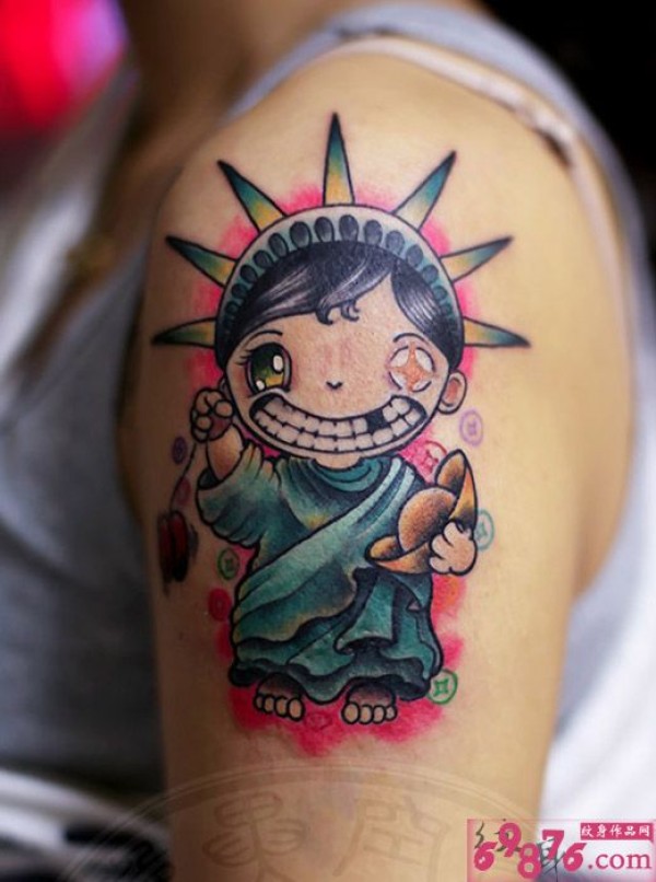 创意手臂自由发财女神纹身图片