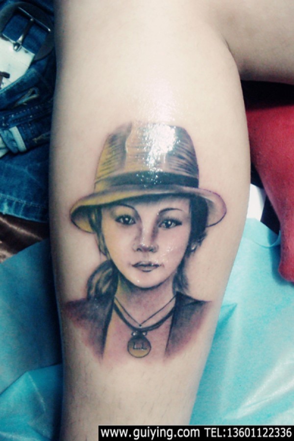 清纯女孩腿上可爱肖像纹身图片_肖像纹身图案大全_纹身图吧