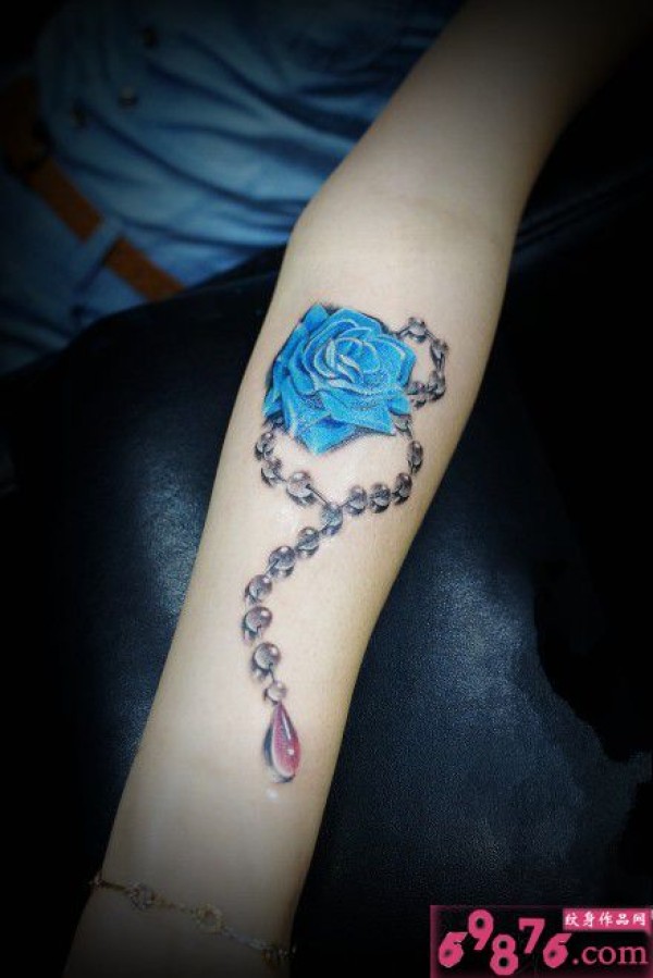 创意蓝玫瑰项链手臂纹身图片