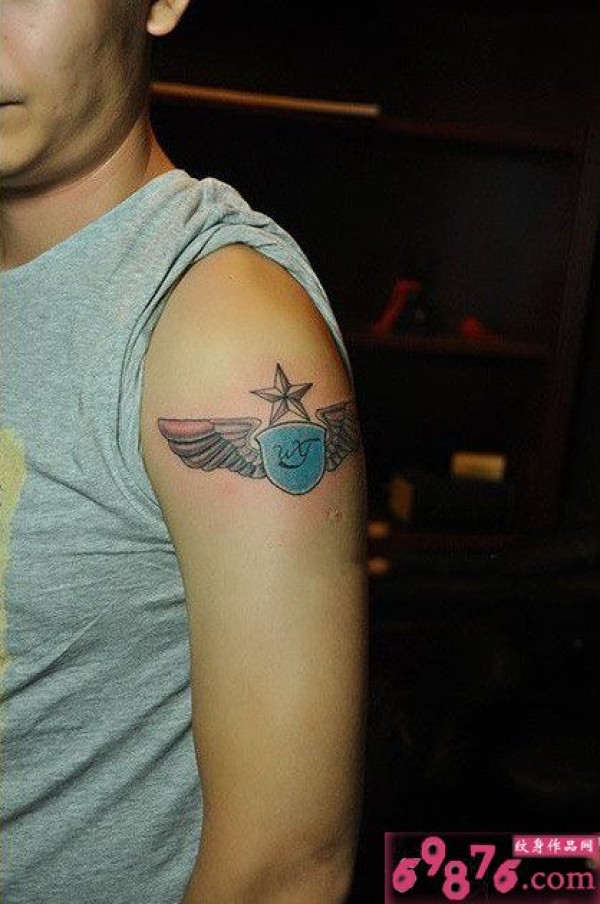 盾牌翅膀手臂纹身图片
