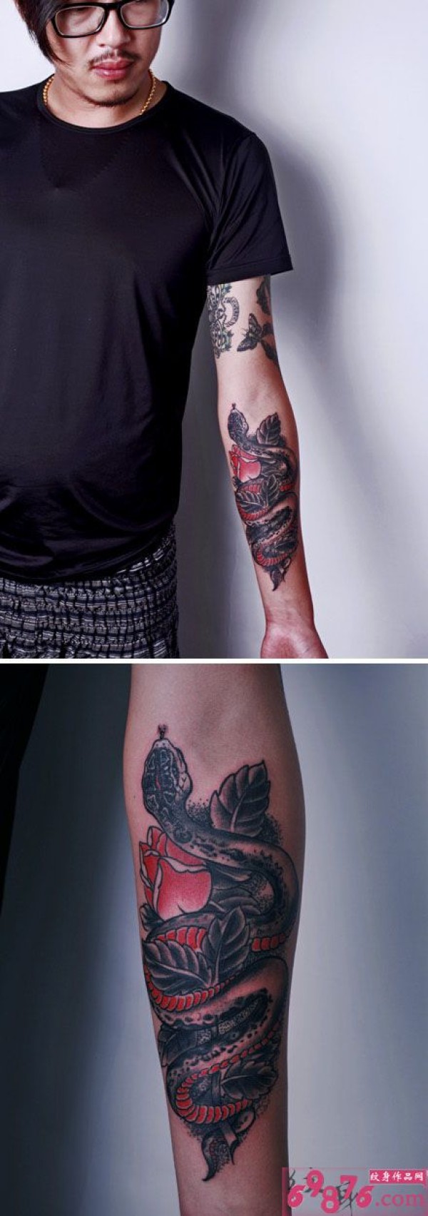 德国恐龙纹身眼镜蛇和卡通鳄鱼纹身水彩动物图案纹身