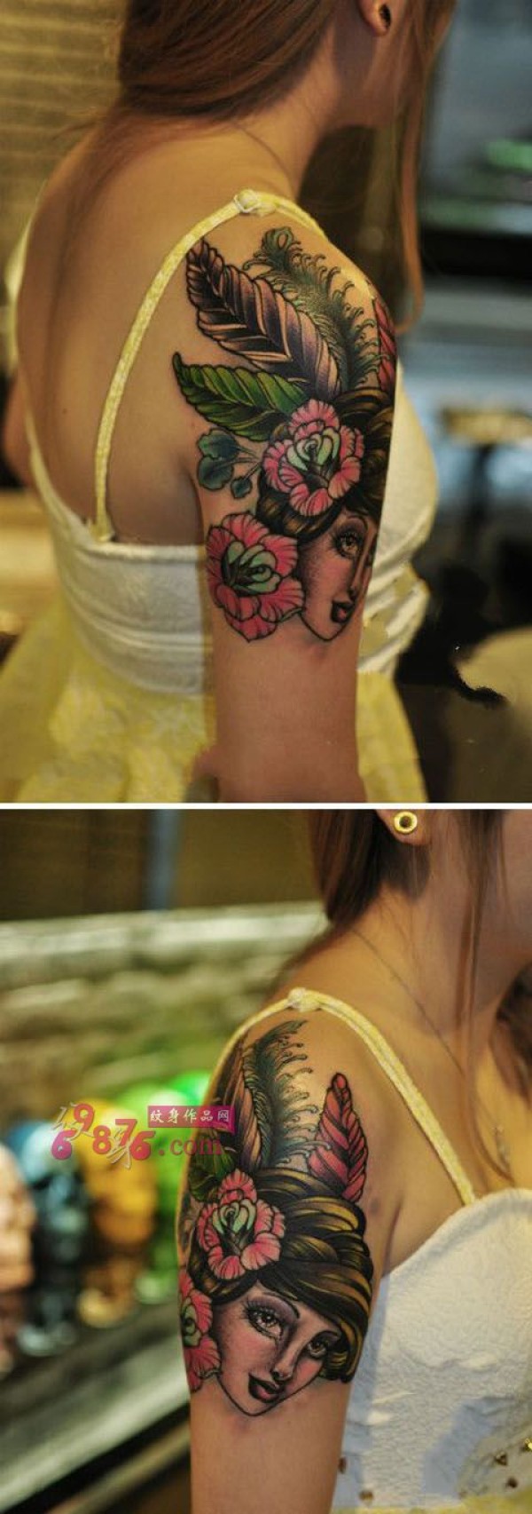 school花臂纹身--一组漂亮的school风格的花臂纹身图案作品