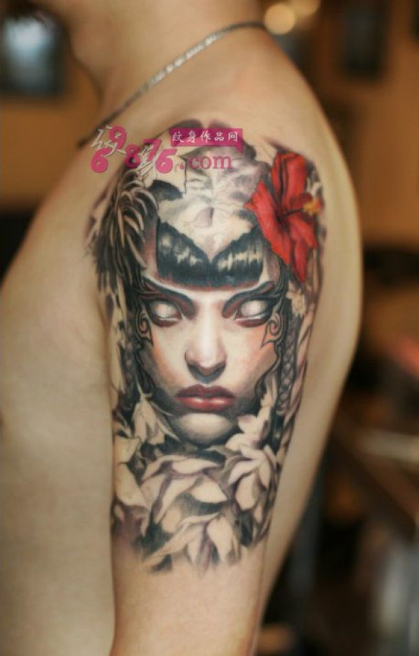 女性肩部肖像刺青_肖像纹身图案大全_纹身图吧