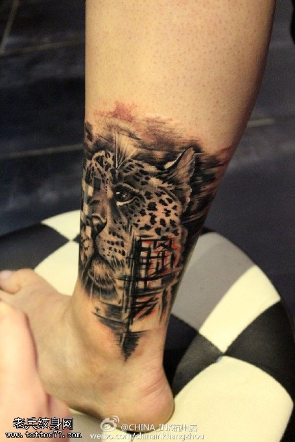 腿部豹子纹身图案