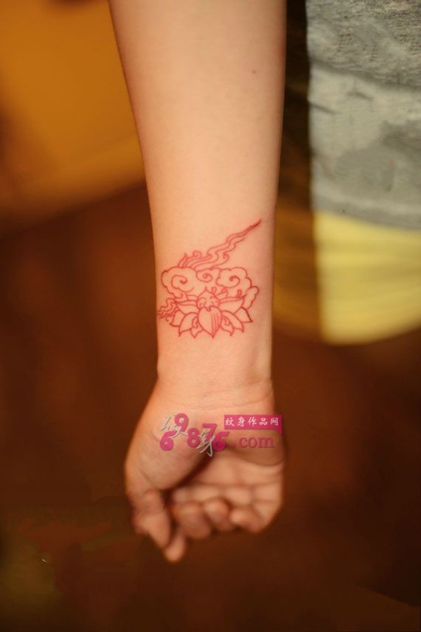 小清新红莲花手腕纹身图片