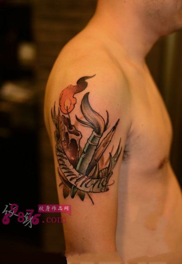 SCHOOL风蜡烛手臂纹身图片
