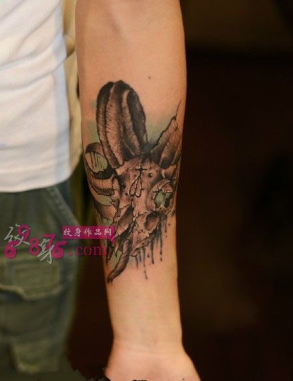 欧美风复古羊角手臂纹身图片
