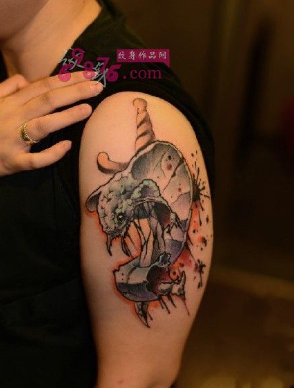德国恐龙纹身眼镜蛇和卡通鳄鱼纹身水彩动物图案纹身