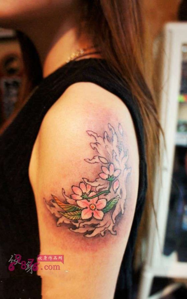 女生肩花纹身_15张女性双肩对称的肩花纹身图案作品图片
