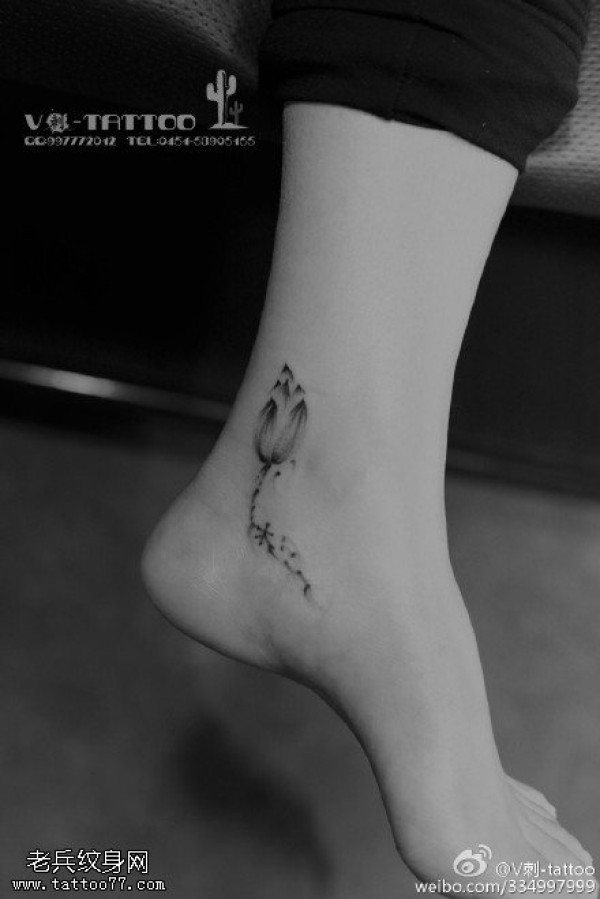 分享一款脚踝莲花纹身图案_脚部纹身图案大全_纹身图吧