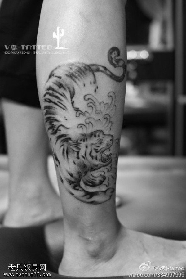 老虎图腾纹身 多款黑灰纹身点刺技巧老虎纹身图案