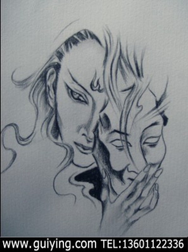 能面万媚纹身手稿_52张日式能剧面具纹身手稿图案素材欣赏