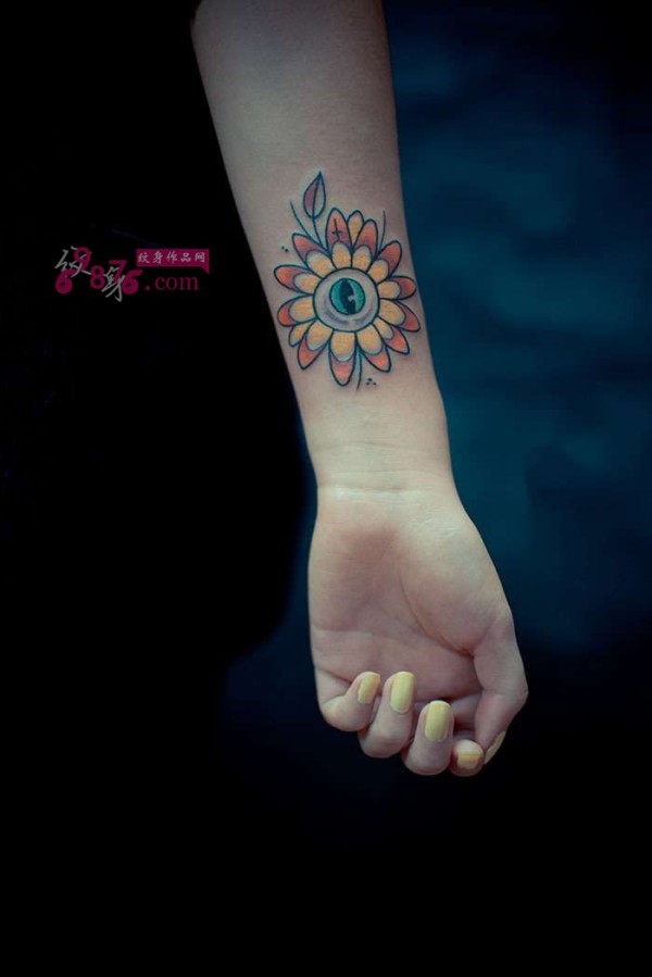彩色眼睛向日葵手臂纹身图片