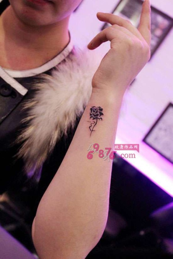 创意黑玫瑰手腕小纹身图片