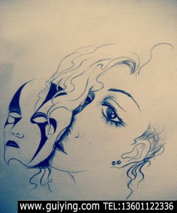 能面万媚纹身手稿_52张日式能剧面具纹身手稿图案素材欣赏