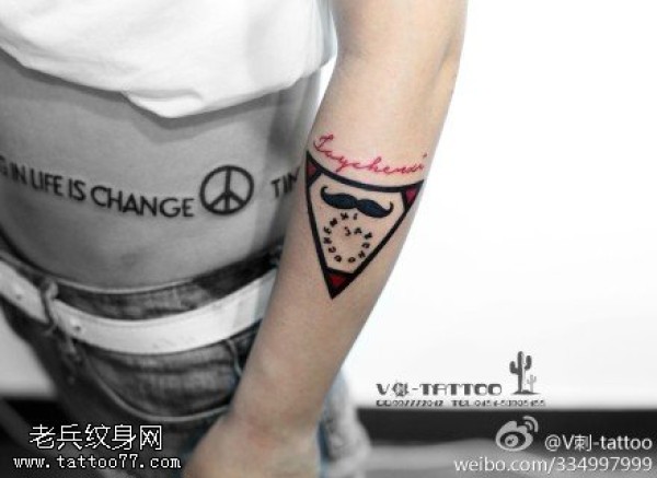 复古卡通红唇美女手臂纹身_卡通纹身图案大全_纹身图吧