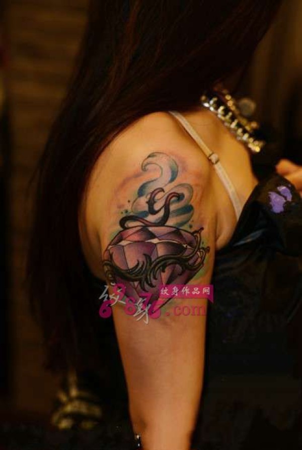 创意紫色大钻石手臂纹身图片