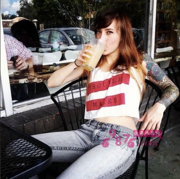 欧美潮妞个性花臂纹身图片