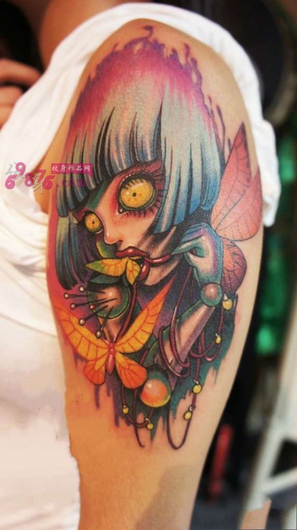 手臂一款彩色蘑菇纹身图案_臂部纹身图案大全_纹身图吧