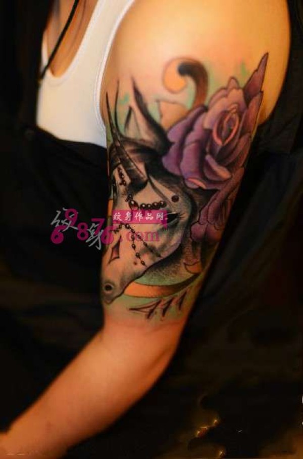 创意彩色花臂马纹身图片