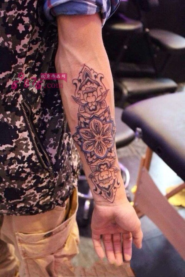 创意花小臂金刚杵纹身图片