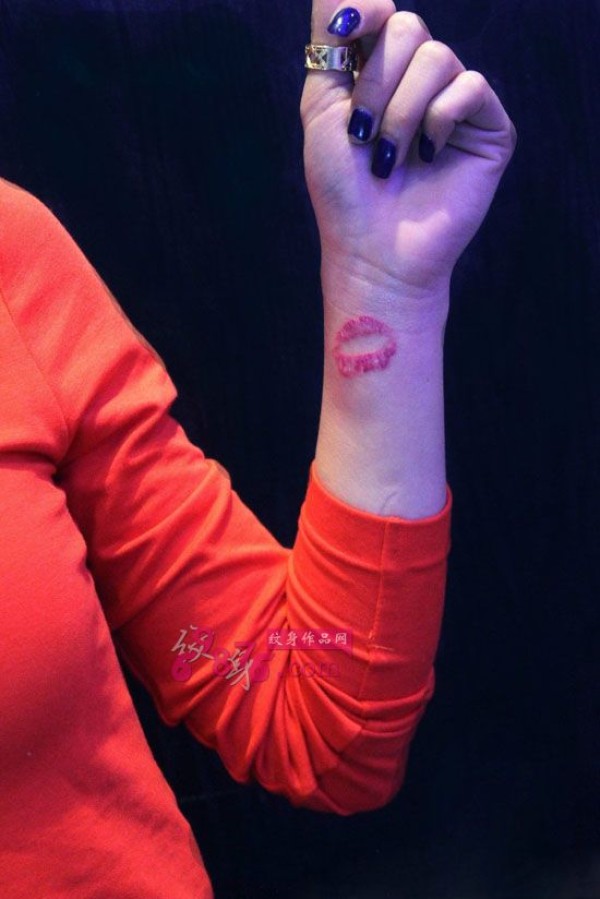粉红唇手腕时尚纹身图片