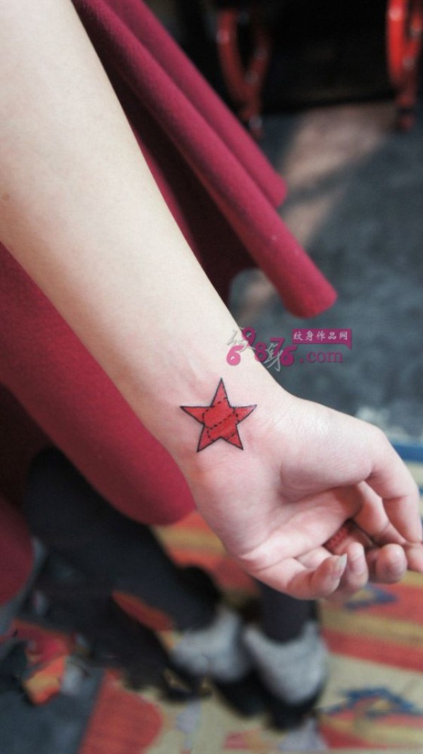 红色星星手腕时尚纹身图片
