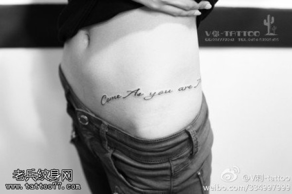 女生后腰纹身黑白灰风格抽象线条纹身图案