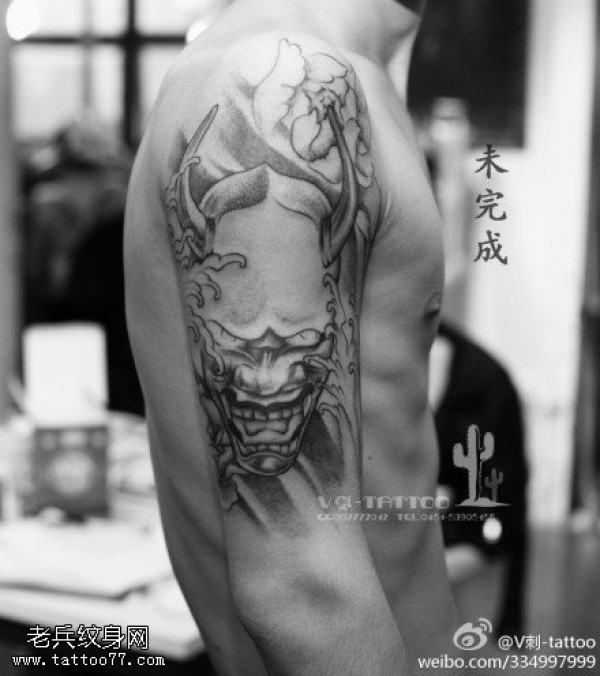 长角獠牙般若纹身图案