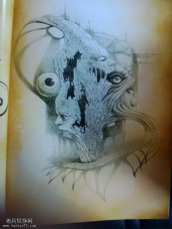 龙纹身手稿_一组老传统黑灰龙手稿纹身图案